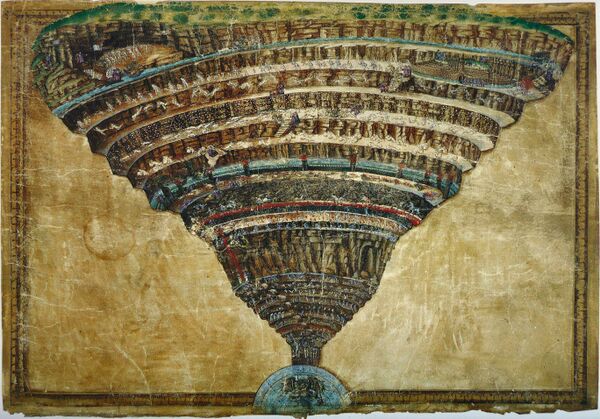 Данте детализирует это представление и описывает устройство загробного мира, с графической определённостью фиксируя все детали его архитектоники[4].