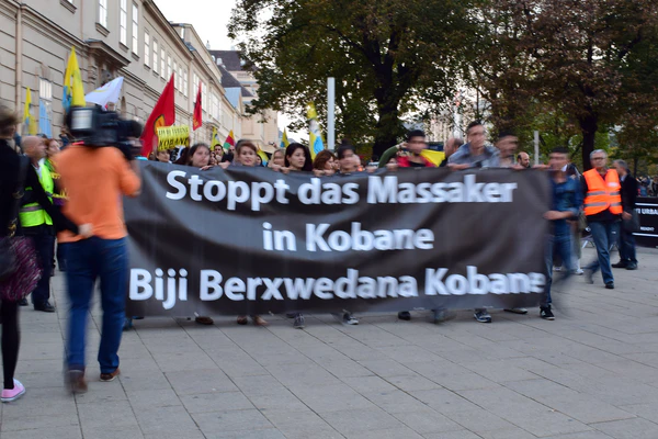 - В поддержку курдов выступили многие леворадикальные организации в Турции — в частности, Революционное Анархистское Действие (тур. Devrimci Anarşist Faaliyet, турецкая федерация-участница IFA).[69]