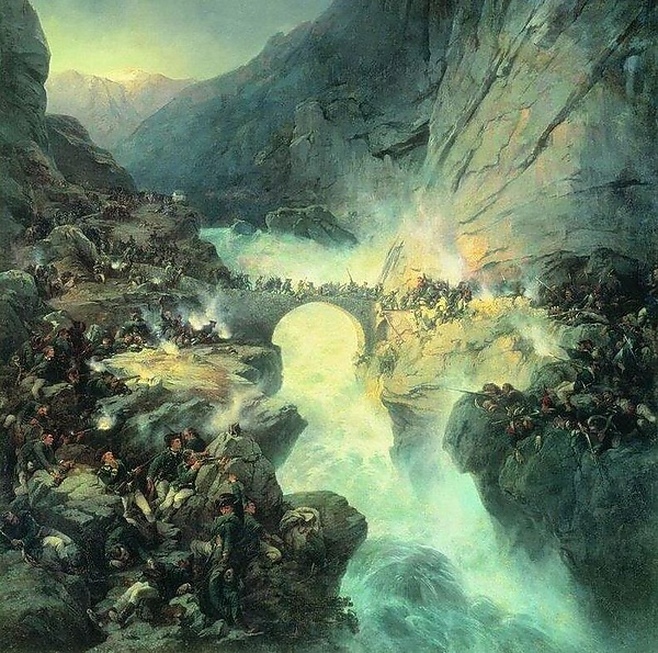 23 сентября 1799 года войска фельдмаршала А. В. Суворова с боем преодолели перевал Сен-Готард и вышли к долине реки Ройс. Отправив полк Каменского (пехотный Архангелогородский полк) на левый берег реки, чтобы иметь возможность атаковать заслоны противника с тыла, Суворов повёл основную часть армии по правому берегу, вверх от деревушки Урнер, к единственной переправе в этих местах, так называемому Чёртовому мосту (Тойфельбрюке)[1][2].