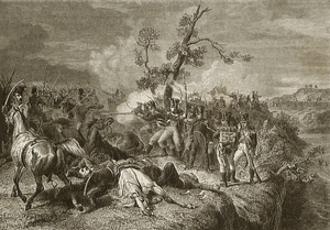 «В сие время выведен был один батальон пехоты из кустов, множество неприятельских орудий устремилось на него ядрами, целые ряды жестоко вырывались из фронта; когда было доложено графу Остерману-Толстому о напрасной убыли и потере людей, он, под березой стоя, нюхая табак, сказал: „Стоять и умирать“.»