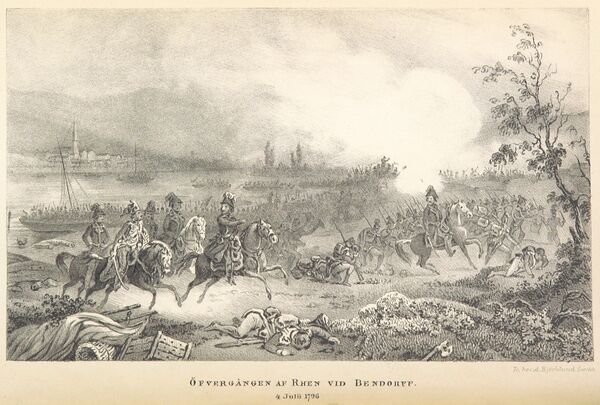 Третий переход Рейна французами в кампанию 1796 года начался рано утром 2 июля (в 4.30 ч.) с канонады примерно 40 орудий, которые были установлены от Сант-Себастьяна до Вайсентурма на левой стороне Рейна.