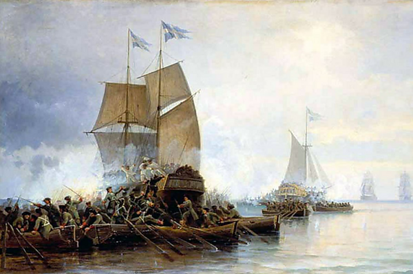 В августе 1708 года после перехода через реку Сестра Г. Ю. Либекер решил форсировать Неву восточнее Санкт-Петербурга. Для чего пошёл на хитрость — часть его войск имитировала переправу возле устья Тосны, а сам с основными силами продвинулся ниже по течению Невы[8].