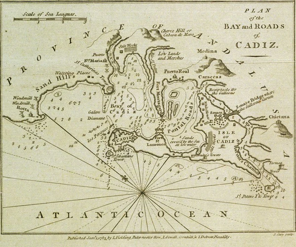 Блокада Кадиса Королевским флотом продолжалась ещё в течение двух лет после Трафальгарского сражения 1805 года. Цель блокады была той же, что и в 1805 году — запереть франко-испанский флот в гавани, а также внимательно следить на любыми передвижениями противника по морю и атаковать его при необходимости. К числу судов, осуществляющих блокаду порта, относились и эти три судна — 38-пушечный фрегат Alceste под командованием капитана Мюррея Максвелла, 28-пушечный фрегат Mercury, под командованием капитана Джеймса Александра Гордона и 18-пушечный шлюп Grasshopper (шестнадцать 32-фунтовых карронад, и две длинных 6-фунтовых пушки), под руководством капитана Томаса Сеарла[3].