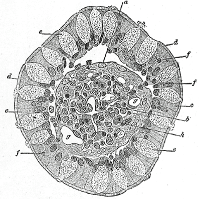 Бокаловидные клетки – вид энтероцитов. Располагаются на кишечных ворсинках поодиночке среди каёмчатых энтероцитов. Обычно отсутствуют на самой вершине ворсинки, а также на дне крипты. В тонкой кишке человека составляют 9,5 % от всех клеток эпителиального пласта. Число бокаловидных клеток увеличивается в дистальном направлении кишки[3].