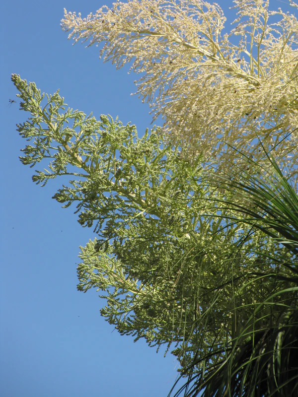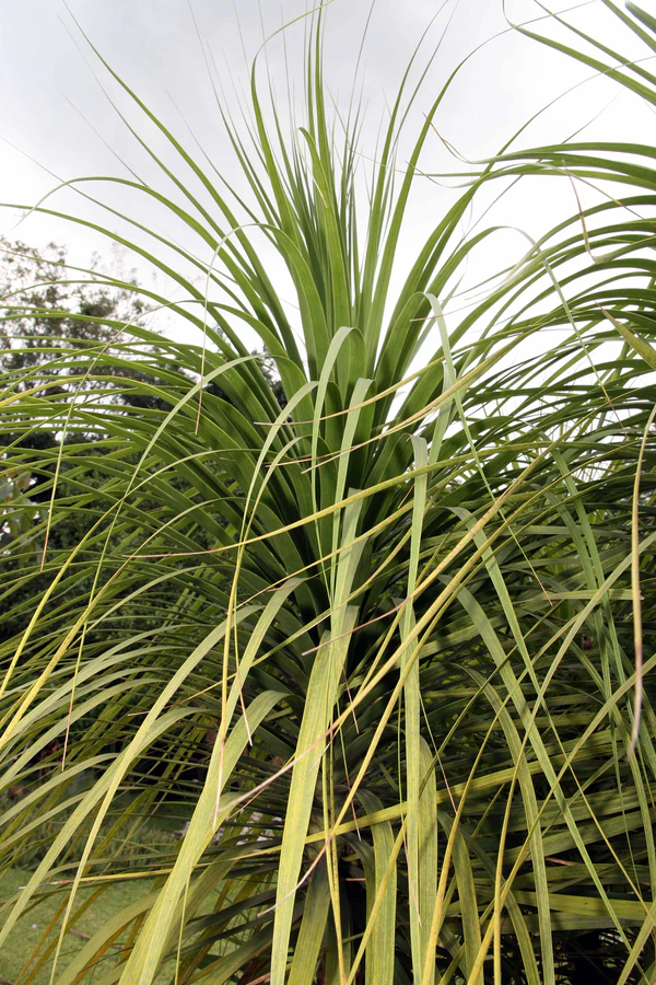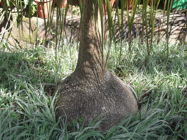 Ствол слаборазветвлённый. Почти сферический каудекс у молодых растений со возрастом достигает в длину от 4 до 6 м и диаметра до 50 см в основании. Кора гладкая. Листья зелёные, линейные, изогнутые, тонкие, плоские или слегка ребристые, длиной от 2.3 до 4.6 м и шириной от 15 до 20 мм.