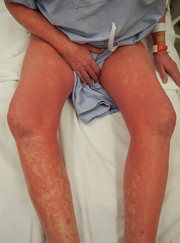 - Генерализованная эритродермия (покраснение более 80 % кожи, с или без шелушения).