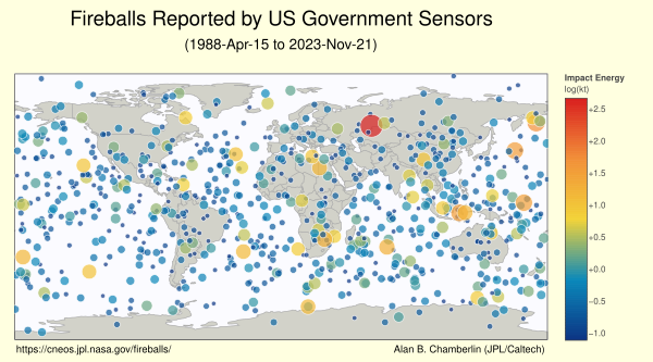 Сегодня Центр исследований околоземных объектов НАСА (англ. Center for Near-Earth Object Studies, CNEOS) также занимается отслеживанием событий появления болидов. Существует интерактивная карта, информирующая посетителя сайта о всех зарегистрированных болидах с 15 апреля 1988 года. Кроме того, есть таблица, в которой представлена информация о дате и времени каждого зарегистрированного события появления «огненных шаров», а также его приблизительная общая энергия оптического излучения и рассчитанная общая энергия удара. В сообщении указываются географическое положение события, высота и скорость при максимальной яркости[14].