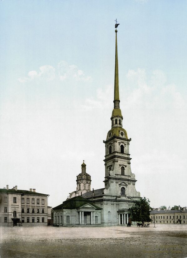 - 1712—1733 годы: Шпиль Петропавловского собора[3]. Возведён архитектором Д. Трезини. Трёхъярусная колокольня высотой 122,5 метра, увенчанная золочёным шпилем с фигурой летящего ангела, является высотной доминантой и символом города. Освящён в 1733 году.