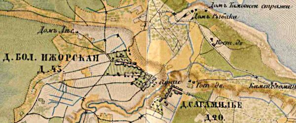 - В 1885 году деревня Большая Ижорская насчитывала 45 дворов, Сагамилье — 20.