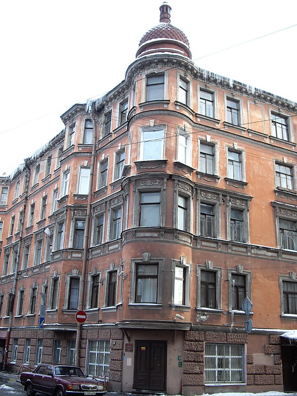 - Дом № 14а следует по улице за домом № 14. Здесь располагалась вечерняя сменная школа № 32 Петроградского района,[8] затем в 1950-е — 1960-е гг. — школа рабочей молодёжи № 68 Петроградского района,[9] а в 1970-х гг. — медвытрезвитель.[10] В начале XXI века (до 2003 года) этот флигель служил одним из производственных помещений завода «Пирометр».[11] Затем он был переоборудован под гостиницу — сначала «Александр Хауз Inspiration», а затем «Бутик-Отель Аристос».[12]