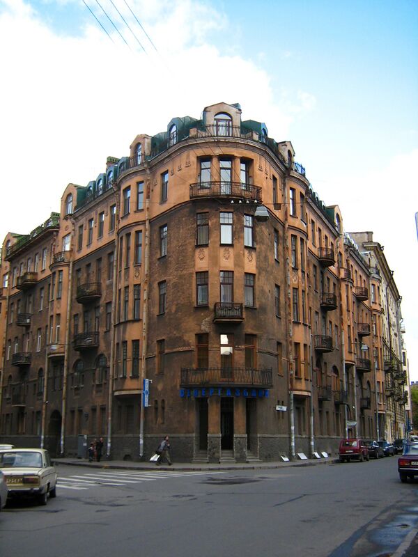 - Большая Посадская, 18, левая часть / Певческий переулок, 7 — доходный дом, построен в 1879—1881 годах архитектором П. О. Осиповым.