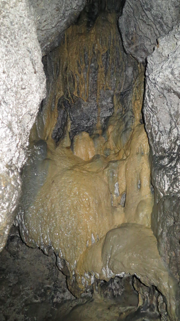 В пещере сформировалось много сталактитов и сталагмитов, но почти все они были уничтожены.