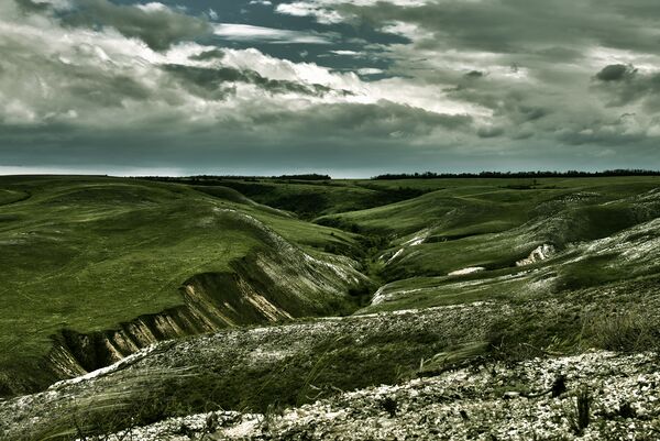 Внутренние территории излучины — правобережье Дона местность в значительной степени пересеченная, малонаселённая, с малым количеством доступной пресной воды. В центральной (внутренней) части излучины — сухие водораздельные степи Донской гряды, с абсолютными высотами до 250 метров над уровнем моря. Ближе к реке береговой рельеф изрезан огромными оврагами и балками, с общим перепадом высот более сотни метров на участках в пару километров и менее, крутыми обрывами прямо на берегу реки.