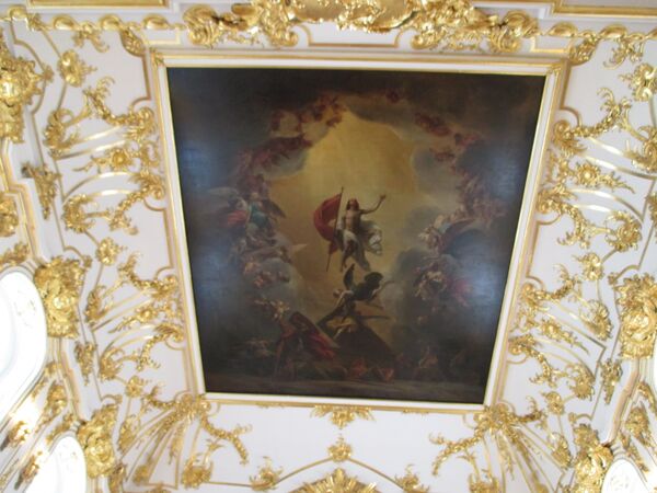 Царские врата вместе с шестью живописными медальонами (иконами) уцелели во время пожара 1837 года. Их спасли и после восстановления дворца вернули на место в обновлённый иконостас.
