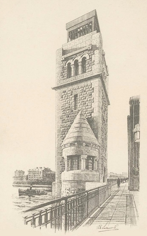 Разводной пролет с механизмами исполнен компанией С. Петербургскаго металлическаго завода при директорах Н. Д. Лесенко, В.Г. Сонгине, К.П. Федорове»[6]