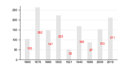 На 1 октября 2018 года насчитывалось 183 жителя в 82 домохозяйствах, из них 34 младше трудоспособного возраста, 107 — в трудоспособном возрасте и 42 — старше трудоспособного возраста[4].