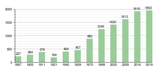 По данным на 1 января 2016 года население составило 1918 человек в 702 домохозяйствах[2].
