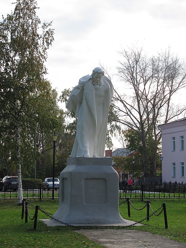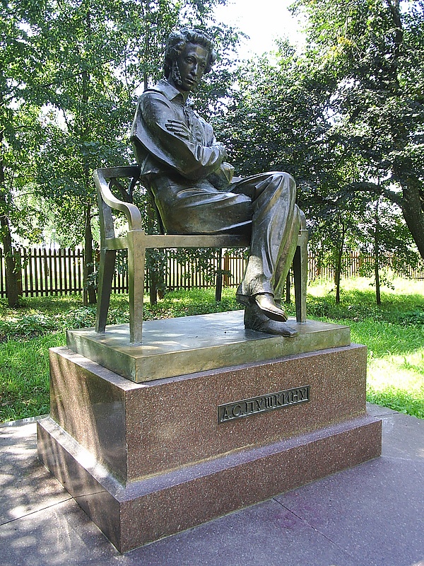 Второй, менее известный памятник работы С. Д. Меркурова, находится в стороне от усадьбы. Пушкин изображён в полный рост, в движении, со слегка опущенной головой и сцепленными за спиной руками, идущим в раздумьях. Памятник открыт 10 февраля 1941 года[44].