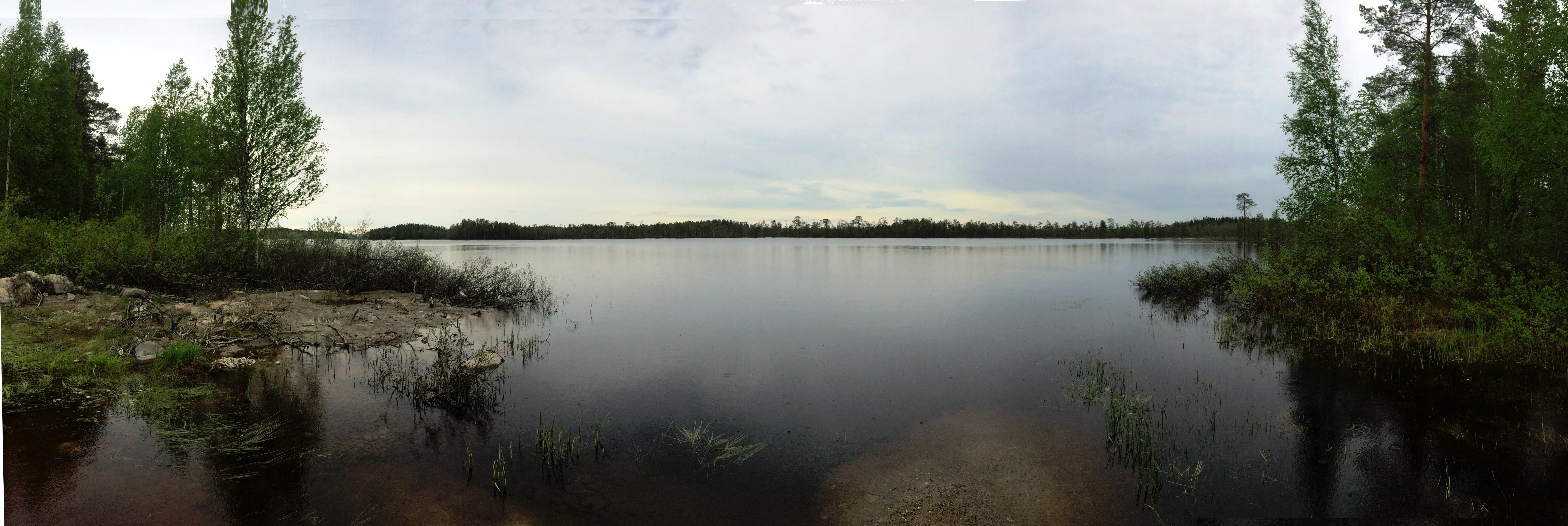 Озера вытянуто с северо-запада на юго-восток, состоит из четырёх плёсов соединённых узкими проливами. Берега возвышенные, каменисто-песчаные, покрыты хвойным лесом. На озере 88 островов общей площадью 14,0 км².
