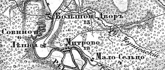 Затем, деревня Большой Двор упоминается на специальной карте западной части России Ф. Ф. Шуберта 1844 года[4].