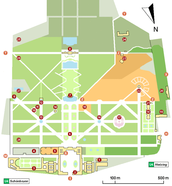 В 1880 году на заказ императора Франца Иосифа I придворным архитектором Францем Ксавером Зегеншмидом был построен «Большой Пальмовый дом». При его открытии 17 июня 1882 года, здание, состоящее из сборных элементов, имело общую площадь 2500 м² и являлось самым большим стеклянным домом в мире. Его длина составляла 111 метров, максимальная ширина — 28 метров, а высшая точка достигала 25 метров[2].