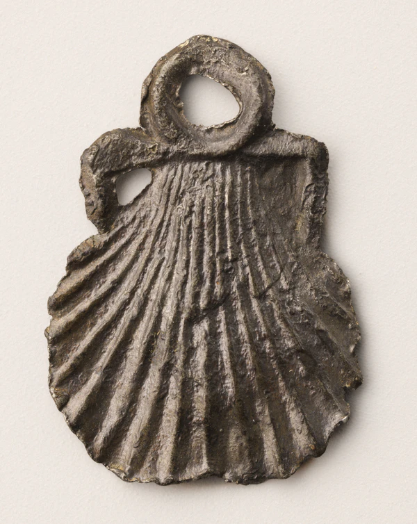 Около XI[39] или XII[33] века раковины больших гребешков стали эмблемой паломников, ходивших на поклонение к одной из главных христианских святынь: мощам апостола Иакова в испанском городе Сантьяго-де-Компостела[39][40]. Возвращаясь домой, паломник приносил с собой раковину как свидетельство о совершённом паломничестве. Вначале пилигримы просто собирали их на морском берегу; позднее гребешки стали продавать в самом месте паломничества[41][33]. Существует множество легенд, объясняющих, почему именно раковина стала символом Святого Иакова и связанного с ним паломничества[33]. Многочисленные археологические исследования могил средневековых паломников в разных странах показали, что найденные в них раковины принадлежат именно к виду Pecten maximus[42][33].