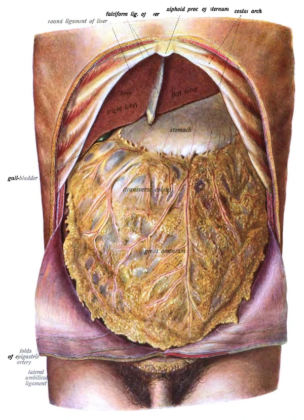 Большой сальник (лат. omentum majus) — продолжение желудочно-ободочной связки, свободно свисающее в брюшной полости в виде «фартука» до уровня верхней апертуры малого таза.[1]