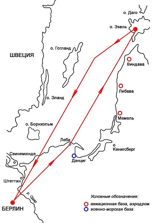 Следует совместными усилиями соединений сухопутных войск, авиации и военно-морского флота ликвидировать военно-морские и военно-воздушные базы на островах Эзель и Даго, и в первую очередь — аэродромы, с которых производятся налёты на Берлин.