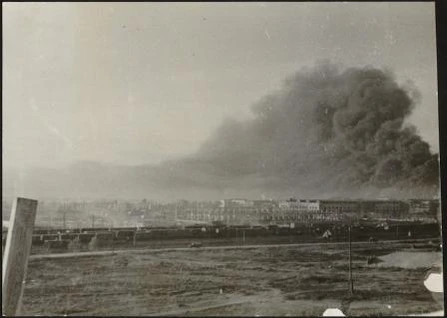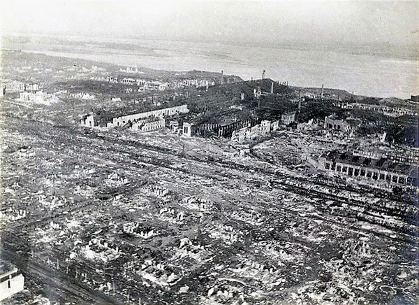 Аэрофотоснимок бомбардировки Сталинграда, сделанный с немецкого самолёта. 17 сентября 1942 года