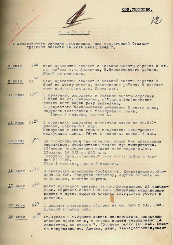 В июле 1942 года 8-му авиакорпусу генерала Мартина Фибига было поручено оказывать авиационную поддержку 6-й армии Паулюса и 4-й танковой армии, наступавшим на Сталинград[14].