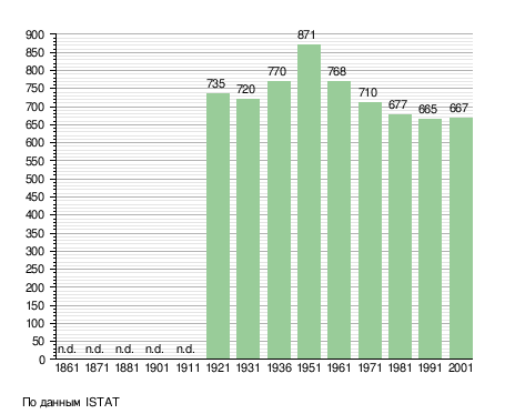 Население составляет 666 человек (2008 г.), плотность населения составляет 35 чел./км². Занимает площадь 19 км². Почтовый индекс — 38080. Телефонный код — 0465.