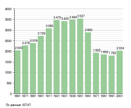 Население составляет 2 884 человек (01-01-2019)[1], плотность населения составляет 95,4 чел./км². Занимает площадь 30 км². Почтовый индекс — 47030. Телефонный код — 0541.