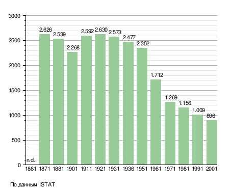 Население составляет 887 человек (2008 г.), плотность населения составляет 63 чел./км². Занимает площадь 14 км². Почтовый индекс — 46020. Телефонный код — 0386.