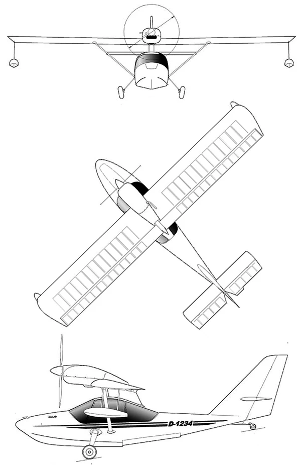 Самолёт оборудован тянущим винтом, расположенным над кабиной пилота.