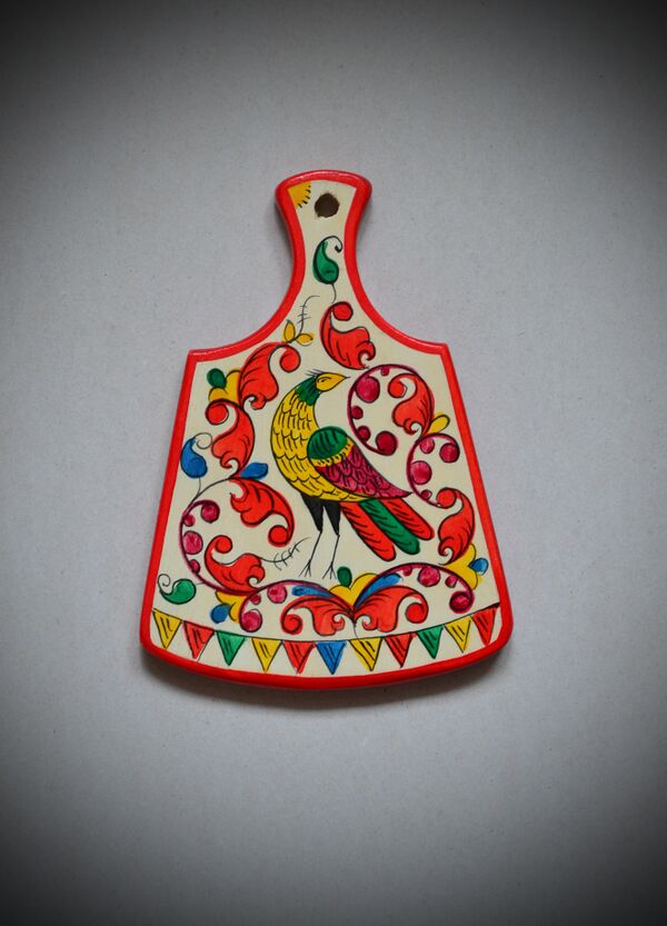 Наиболее часто используемые цвета в росписи: красный, зелёный, коричневый, оранжевый, жёлтый. Орнамент состоит из ромбиков, кружочков, капелек, треугольников. Все элементы обводятся чёрным контуром.