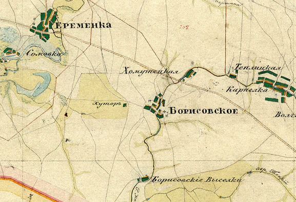 На специальной карте Западной части Российской империи, составляемой с 1826 по 1840 год, Борисовка обозначена как большая деревня в 39 дворов.