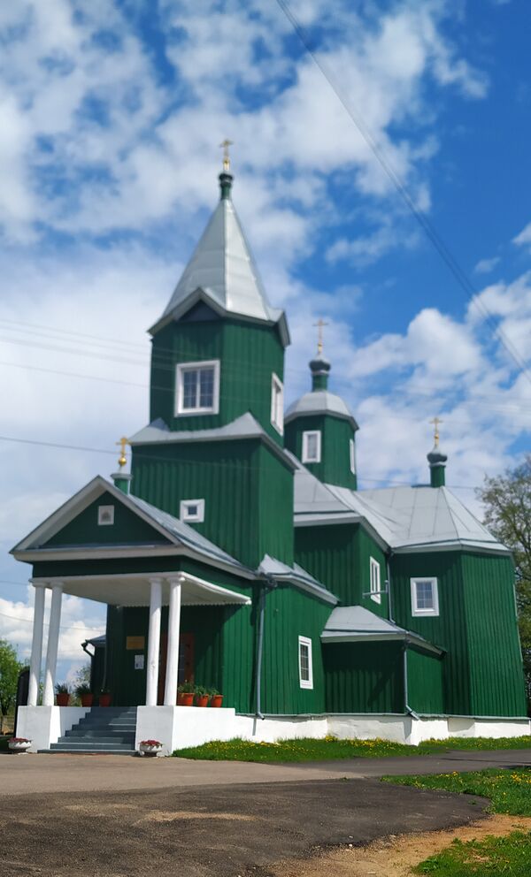 Церковь построена в 1880 году. В архитектуре ощутимы традиции белорусского зодчества XVIII века. Простой двухъярусный иконостас был выполнен местными мастерами в начале XX века. Иконы этого же времени перенесены из церкви села Воскресение, Хиславичского района. Над широким центральным пряслом помещена икона «Новозаветная Троица». Храм не закрывался даже в годы гонений и оставался многие десятилетия единственным, постоянно действующим храмом Хиславичского района. Однако древний престол в нём был разрушен и Литургию приходилось совершать на временном престоле. 14 июля 2000 года, митрополит Смоленский и Калининградский Кирилл (ныне Патриарх Московский и всея Руси Кирилл) совершил великое освящение Святой Трапезы и первую Божественную литургию на новом престоле.