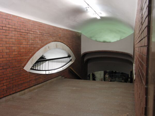 В северном торце центрального зала, в нише над проходом к эскалаторам, располагается другое небольшое панно, на котором изображены золотые купола на фоне керамики терракотового цвета[20]. Ниши являются типичным архитектурным элементом данной станции, они расположены на перилах мостиков перехода, на стенах переходов и коридоров, над арками проходов и эскалаторов. В русском зодчестве такая архитектурная форма называлась «недреманное око» и часто применялась при строительстве крепостей[22].