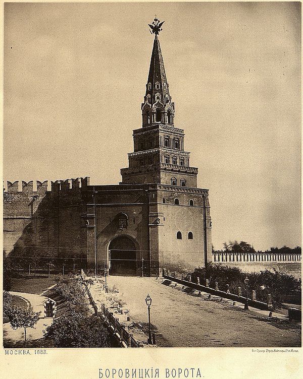 По всему вероятию, в начальное время они открывали путь не прямо на гору, а только на Подол Кремля, как это заметно и теперь по закладенной арке в Боровицкой башне, проводившей и в позднее время к тому же Подолу[18].