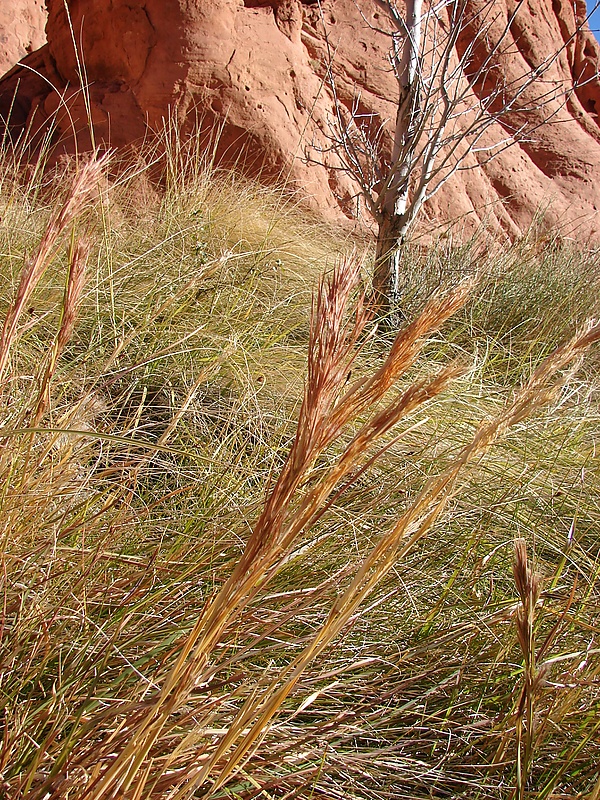 Многолетнее травянистое растение до 2 м высотой с крупными, пушистыми кремовыми соцветиями. Каждое густое, снабжённое хохолками соцветие состоит из нескольких пар опушённых колосков. Листья более 1 м длиной.