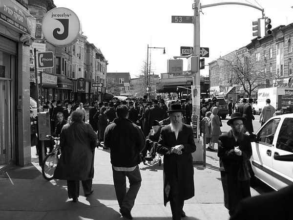 Здесь проживает большое число хасидских семей, крупнейшие из которых династии Бобов, Бельз, Гур, Сатмар, Карлин-Столин, Цанз-Клаузенбург. Также немало миснагедов или литовских евреев.
