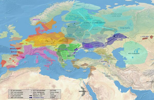 | В составе | Карта ранне-неолитических миграций. Ботайская культура (Botai) на востоке карты. | ||