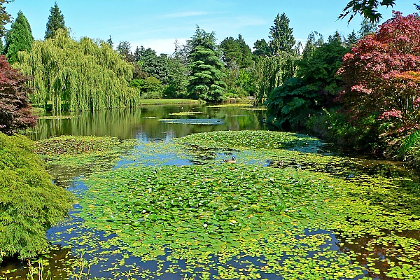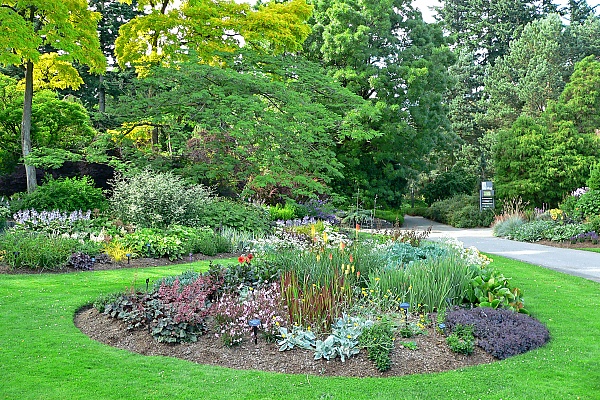 На территории ботанического сада площадью 22 га произрастает 255 тысяч растений из многих уголков мира. Ботанический сад разбит на небольшие тематические сады, среди них — канадский сад наследия, розовый сад, китайско-гималайский сад, средиземноморский сад, сад многолетних растений, сад камней, сад размышлений, аллея рододендронов, сад флоры южного полушария. Украшением ботанического сада являются: индейские тотемы, многочисленные каменные скульптуры, корейский павильон, зелёный лабиринт, а также цепочка связанных между собой озёр и прудов.