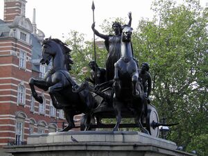 Фигура Боудикки была окружена своеобразным романтическим культом при английских королевах Елизавете и Виктории — не в последнюю очередь потому, что её имя значит «победа» (как и имя Виктория). В викторианский период появляются многочисленные скульптурные изображения свободолюбивой предводительницы иценов[12].
