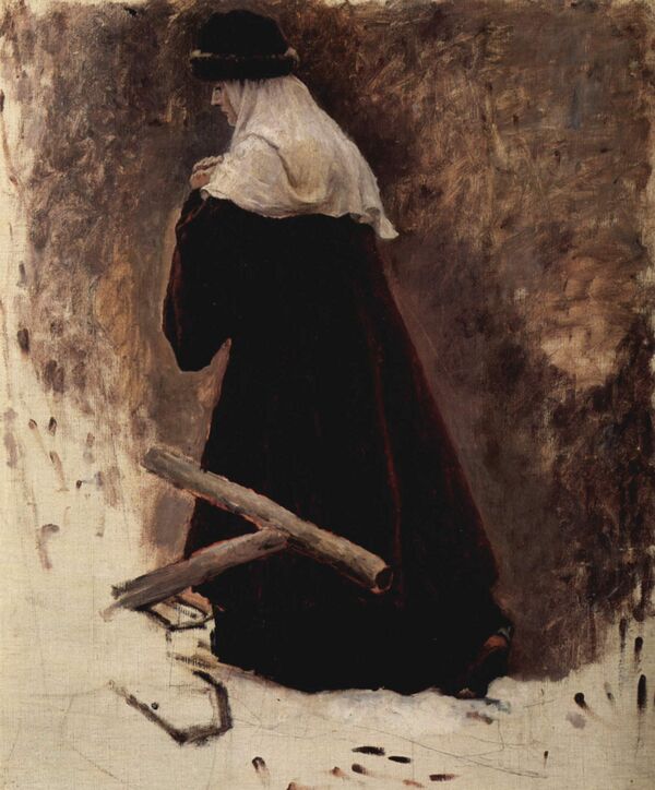 В очерке по поводу картины Всеволод Гаршин предался размышлениям, почему в гнилой землянке предпочла закончить свою жизнь «вельможная жена, владетельница 8000 душ крестьян и имения, оцениваемого на наши деньги в несколько миллионов»[9]. Отвергнув разговоры академистов о «неправильностях в положении рук» и огрехах рисунка, Гаршин расценил «Боярыню Морозову» как бесспорный художественный триумф реалистической манеры Сурикова: