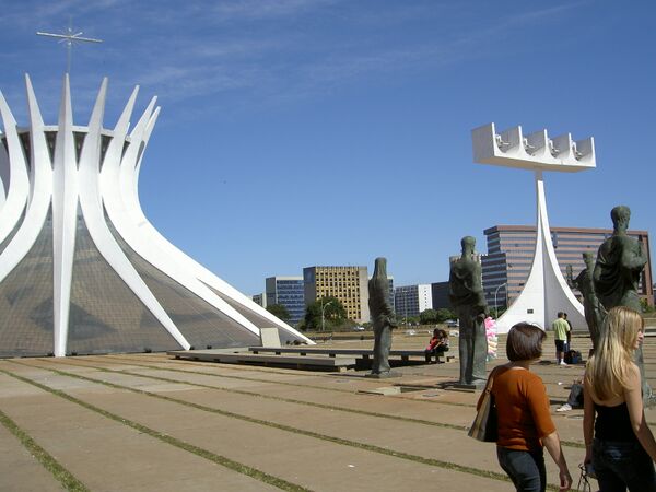 Среди выдающихся творений Нимейера — кафедральный собор Бразилии, основные помещения которого расположены под землёй, тогда как с улицы виден лишь его купол из бетона и витражного стекла.