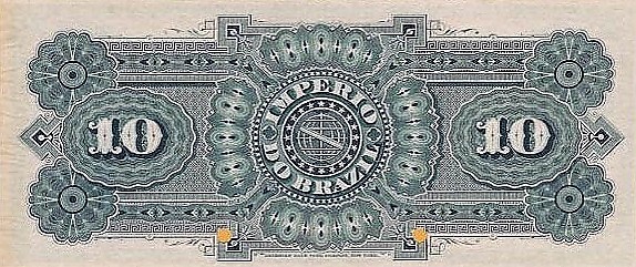10 мильрейсов (10 000 рейсов) Бразильской Империи 1883 года. Обратная сторона. |
