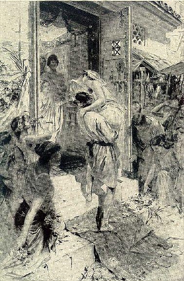 Одну из девиц, самую красивую и привлекательную, похитили, как рассказывают, люди некоего Талассия, и многие спрашивали, кому её несут, а те, опасаясь насилия, то и дело выкрикивали, что несут её Талассию; отсюда и происходит этот свадебный возглас[33].