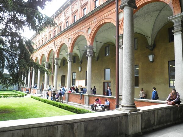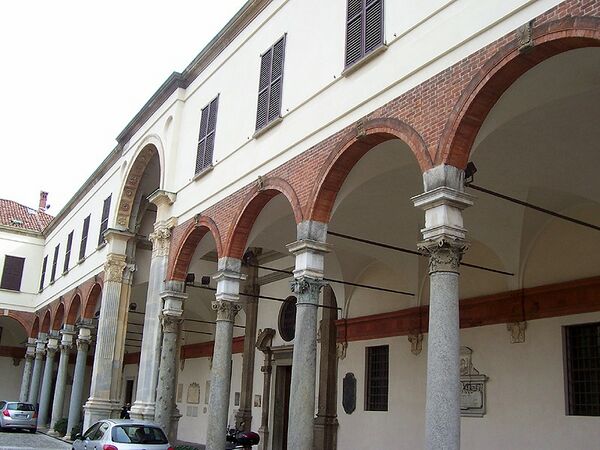 В базилике Сант-Амброджо в Милане Браманте построил галерею, в которой применил «аркаду по колоннам» (открытие Ф. Брунеллески), частично использовав «древесные колонны» со стилизованными сучками якобы стволов деревьев. Галерея получила название «Аркада Браманте». Похожую галерею Браманте создал в кьостро (внутреннем дворе) цистерцианского монастыря Сант-Амброджо (ныне здание Католического университета) и в Кастелло Сфорцеско.