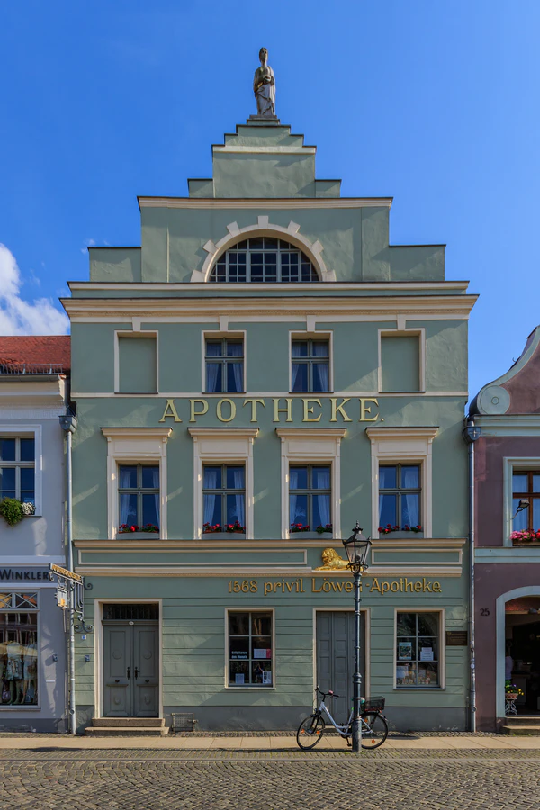 В 1568 году маркграф Бранденбурга, в связи с необходимостью улучшения ситуации в области медицины в Котбусе, выдал привилегию на организацию аптеки доктору Петрусу Кнемиандеру (нем. Petrus Cnemiander), который уже в 1573 году открыл Львиную аптеку[1]. Благодаря привилегии Львиная аптека более 200 лет оставалась единственной в городе[2]; вторая аптека в Котбусе — Аптека Адлера (нем. Adler-Apotheke) — открылась только в 1797 году[1].